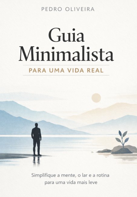 A capa do 03 Guia Minimalista Vida Real transmite leveza, elegância e simplicidade logo no primeiro olhar. Com uma paleta de cores neutras e suaves, o design reforça a essência do minimalismo: menos excesso, mais significado.