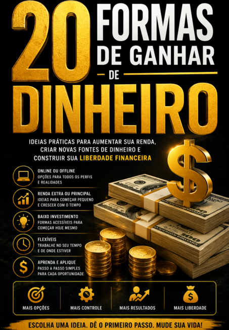 20 Formas de Ganhar Dinheiro” é um guia direto e prático para quem quer sair do zero, aumentar a renda ou criar novas fontes de dinheiro — mesmo sem experiência ou muito investimento.