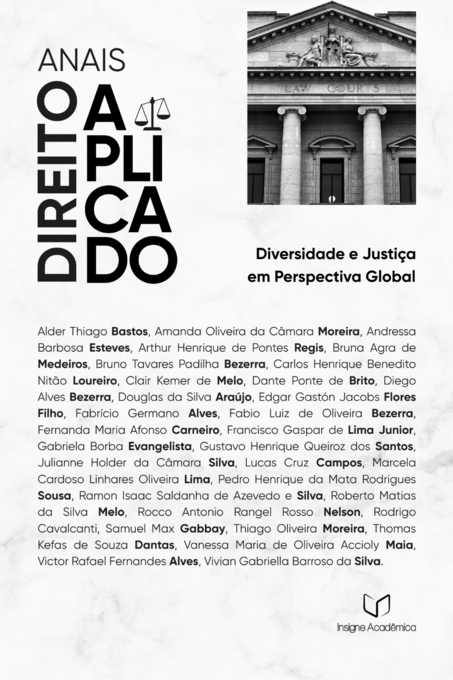 A presente obra, Anais do VII Congresso Internacional de Direito Aplicado: Diversidade e Justiça em Perspectiva Global, reúne os resultados de uma ampla produção científica construída a partir dos debates, reflexões e estudos apresentados durante a sexta edição do evento promovido pela Insigne Acadêmica. O Congresso reafirmou sua vocação interdisciplinar e seu compromisso com a construção de um Direito voltado à equidade, à inclusão e à transformação social, consolidando-se como um espaço de interlocução qualificada entre pesquisa-dores, docentes, discentes e profissionais de diversas regiões e instituições.