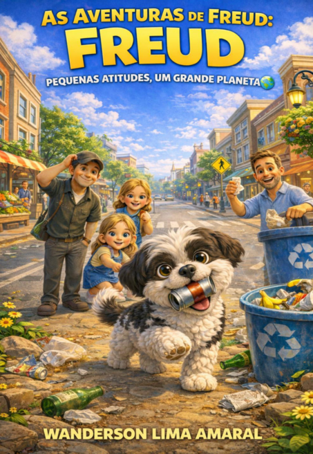FREUD É UM CÃOZINHO ATENTO E MUITO ESPECIAL. ELE NÃO SABE FALAR COM PALAVRAS, MAS SABE ENSINAR COM ATITUDES. EM SEUS PASSEIOS PELA RUA, PELO BAIRRO E PELA NATUREZA, FREUD ENCONTRA PESSOAS QUE, SEM PERCEBER, ACABAM PREJUDICANDO O PLANETA. COM CARINHO, CORAGEM E MUITA ESPERTEZA, ELE MOSTRA QUE CADA PEQUENA AÇÃO FAZ DIFERENÇA: JOGAR O LIXO NO LUGAR CERTO, CUIDAR DAS PLANTAS, ECONOMIZAR ÁGUA E PROTEGER A NATUREZA. UMA HISTÓRIA DOCE E EDUCATIVA QUE ENSINA ÀS CRIANÇAS QUE CUIDAR DO PLANETA COMEÇA COM PEQUENAS ATITUDES — E QUE ATÉ UM CÃOZINHO PODE FAZER UMA GRANDE DIFERENÇA.