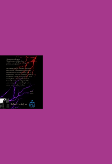 Rafael Medeiros é o fundador e CEO do Rafa Games Studios, criador da saga Ashborn. Apaixonado por mundos sombrios e narrativas épicas, dedica-se a transformar histórias em experiências intensas que unem fantasia, emoção e reflexão. Seu trabalho busca sempre desafiar limites e mergulhar o leitor em universos únicos.