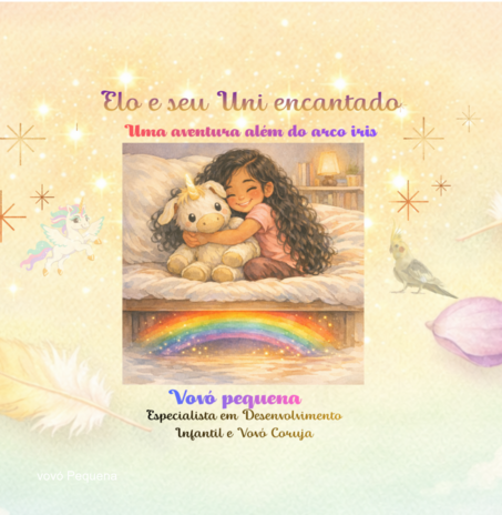 O que um unicórnio velhinho e encardido pode fazer? Para muitos, o Uni é apenas um brinquedo antigo, mas para a Elo, ele é o guardião de todas as suas cores e aventuras! Quando a Vovó Pequena é levada pela terrível Bruxa do Pântano para o Vale das Sombras, Elo e seu fiel uni e a Meg (a calopsita da vovó pequena) partem em uma jornada mágica além do arco-íris. Enfrentando crocodilos que não escovam os dentes e pântanos com cheiro de ovo podre, eles vão descobrir que o maior poder do mundo não está em ser novo ou branquinho... está no amor que brilha na alma! Uma história sobre coragem, amizade e o brilho que só o coração de uma neta e sua vovó conseguem ver."