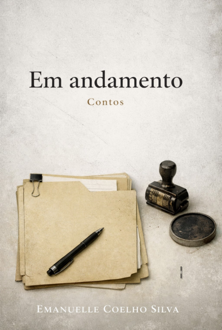 Em andamento reúne contos mínimos e psicológicos, situados na fronteira entre o que foi dito e o que não chegou a ser nomeado. É um registro de estados — momentos em que algo já terminou, mas ainda não se reorganizou por completo.