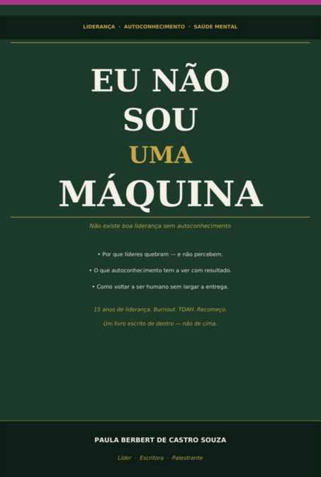 Eu Não Sou Uma Máquina é o livro de uma líder com mais de quinze anos de experiência que foi ao limite do burnout e voltou com uma certeza: não existe boa liderança sem autoconhecimento. Você pode dominar todas as ferramentas e todos os processos, e ainda assim fazer um estrago enorme nas pessoas ao seu redor, se não souber quem é quando o cargo some.