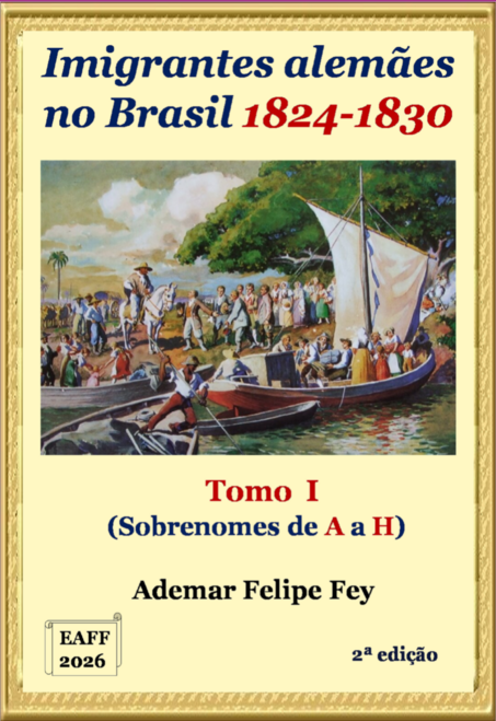 O presente trabalho apresenta a relação dos imigrantes de língua alemã que imigraram para o Brasil no período de 1824 a 1830 (primeiro período oficial da imigração alemã no Brasil). O livro apresenta a relação dos imigrantes ordenada pelos sobrenomes e está dividida em três tomos. No Tomo I estão relacionados os imigrantes cujos sobrenomes começam pela letra A até H. No Tomo II estão relacionados os imigrantes cujos sobrenomes começam pela letra I até P. No Tomo III estão relacionados os imigrantes cujos sobrenomes começam pela letra Q até Z. Estão relacionados todos os imigrantes localizados ou citados na pesquisa iniciada em 2017, com ou sem navio de transporte conhecido. Sempre que possível é apresentado um resumo genealógico dos dados localizados do imigrante citado. Esta obra é complementar ao nosso livro “Imigração Alemã no Brasil: Navios e Passageiros Anos 1824 a 1830”, no qual o foco é apresentar os 42 navios veleiros e as relações de passageiros disponíveis. O livro apresenta mais de cento e trinta referências bibliográficas que podem ser utilizadas pelo leitor no aprofundamento do estudo.