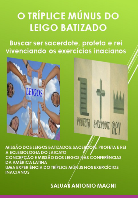 Meu objetivo com este livro é REFLETIR sobre O tríplice múnus do leigo Batizado, e Buscar ser sacerdote, profeta e rei vivenciando os exercícios inacianos, buscando trabalhar as bases da fé que nos conduzem a ser um cristão católico que busca viver o múnus sacerdotal, profético e régio, pois perceberemos que ser cristão não é um título, mas sim uma forma de viver, uma conduta pautada na pessoa de Jesus Cristo. Tudo o mais em nossas vidas tomam um lugar secundário, porque Jesus e o Seu Reino, passam a ocupar o primeiro e o mais importante lugar. O Vaticano II disse que os leigos são os fiéis cristãos que sendo incorporados a Cristo pelo Batismo, constituídos como parte do povo de Deus e feitos participantes do múnus sacerdotal profético e real de Cristo Jesus, exercem sua parte integrante na missão de todo o povo de Deus na Igreja e no mundo. O Concílio Vaticano II também colocou a importância dos leigos e das leigas para o bem de toda a Igreja. Os pastores sabem que não foram instituídos por Cristo Jesus sem a presença deles e delas, de modo que não sejam sozinhos na assunção da missão salvífica da Igreja no mundo, mas eles apascentam de tal modo que haja o reconhecimento dos fieis nas suas atribuições e carismas para que assim, pastores, leigos e leigas cooperam de uma forma unânime na obra comum da evangelização e da salvação em Cristo Jesus. É preciso que todos, na vivência da verdade e do amor, cresçam na relação com Cristo, que é a cabeça da Igreja.Procuramos utilizar como metodologia a espiritualidade Inaciana, contemplativa na ação, segundo o livro dos Exercícios Espirituais de Santo Inácio de Loyola PARA REALIZAR A EXPERIÊNCIA DE ENCONTRO PESSOAL COM JESUS, NO EXERCÍCIO ESPIRITUAL DO DIA-A-IA O autor saluar antonio magni é leigo da Igreja Católica, formado em administração, economia e possui curso superior de religião pela Arquidiocese de Aparecida. Atualmente é oficial reformado da Aeronáutica. Além de do ministério da Palavra é do GRUPO da Liturgia da PARÓQUIA e orientador e acompanhante dos exercícios espirituais de santo Inácio de Loyola.