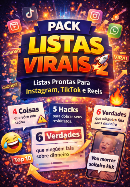 O PACK LISTAS VIRAIS foi criado para quem quer postar conteúdo que prende atenção do começo ao fim.
