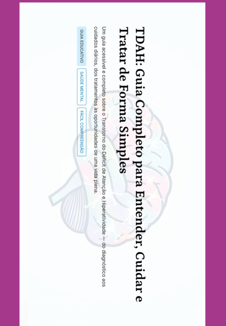 TDAH é um transtorno neurobiológico que afeta atenção, controle de impulsos e comportamento, atingindo 5% a 7% das crianças e persistindo na vida adulta em mais da metade dos casos. O guia explica os três subtipos (desatento, hiperativo-impulsivo e combinado), causas genéticas e ambientais, e desmistifica crenças como "falta de limites". O diagnóstico é clínico, feito por especialistas. O tratamento é multimodal: medicação (70-80% de resposta positiva), psicoterapia (TCC) e abordagens integrativas como exercício físico e mindfulness. Oferece estratégias práticas para organização, controle emocional, apoio familiar e escolar. Aborda desafios na vida adulta (trabalho, relacionamentos, autoestima) e comorbidades comuns. Conclui que, com informação e cuidado adequados, é possível uma vida plena e criativa.